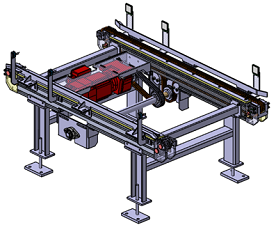 其中RGV小車機械單元包含RGV小車主體(基礎框架、驅動輪組件、從動輪組件、蓋板組件、檢測開關組件、防撞塊組件等)以及車載轉運機構(輸送機或者伸縮貨叉等);