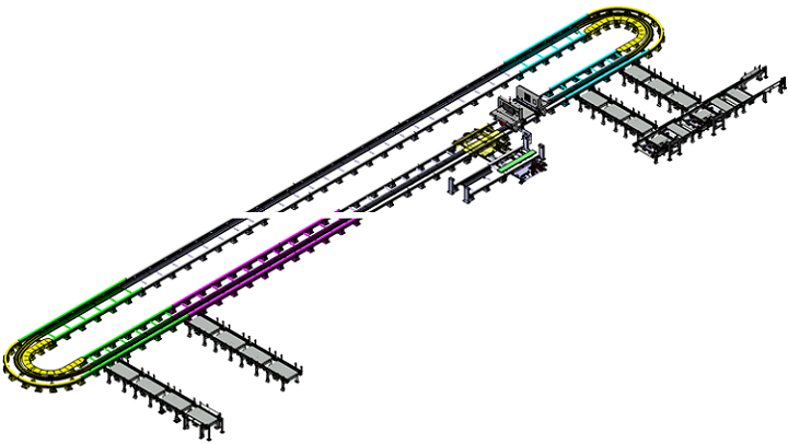 RGV 是一種在固定軌道上進行快速移動的臺車,可搭配輸送機、伸縮貨叉等設備,在智能控制與調度系統的指令下,沿著環形軌道或直線往復式軌道將物料快速、準確、靈活地配送到多個設定的站臺。