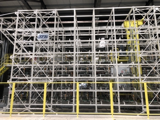 該項目是一個改造項目,在將原車間相關設備全部拆除后,新建了前動力總成裝配線、前托盤立體庫區及相關輸送系統。